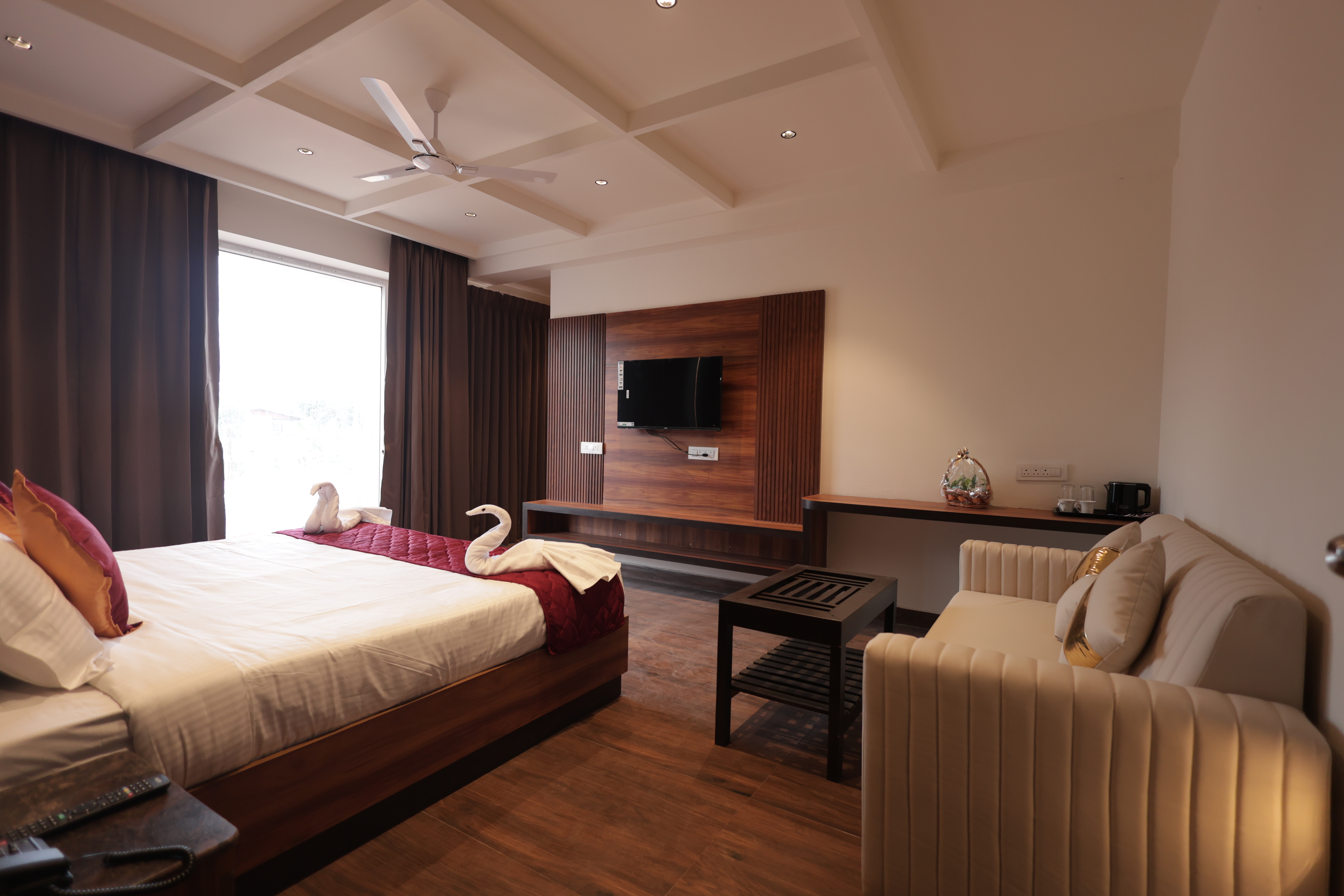 Spacious premium suite designed for comfort and relaxation. The room features a large double bed, elegant interiors, seating area and a pleasant city view. Ideal for couples or business travellers looking for extra space and privacy. Includes air-conditioning, flat-screen TV, free Wi-Fi, work desk, wardrobe and attached modern bathroom with hot water facilities.