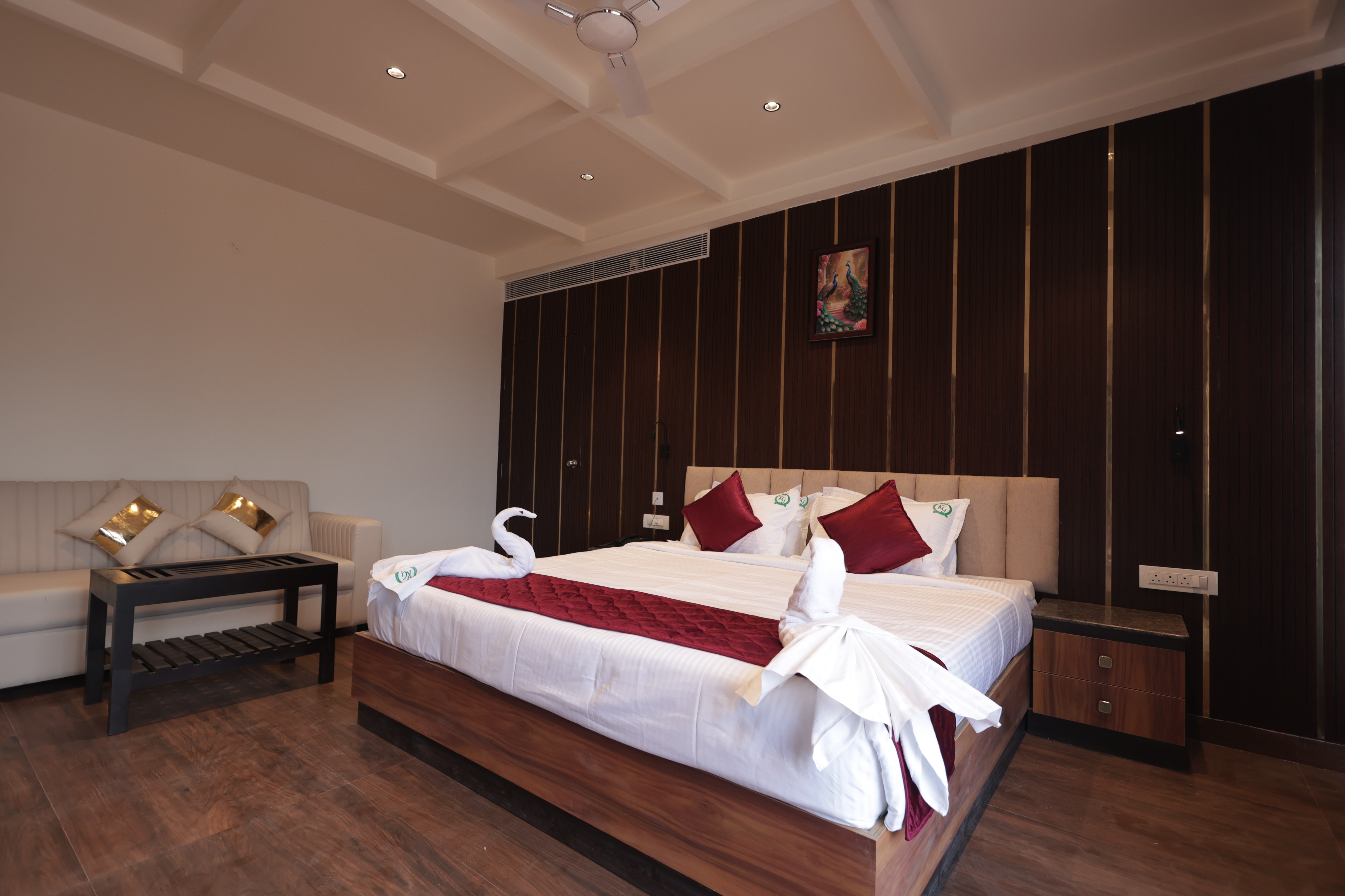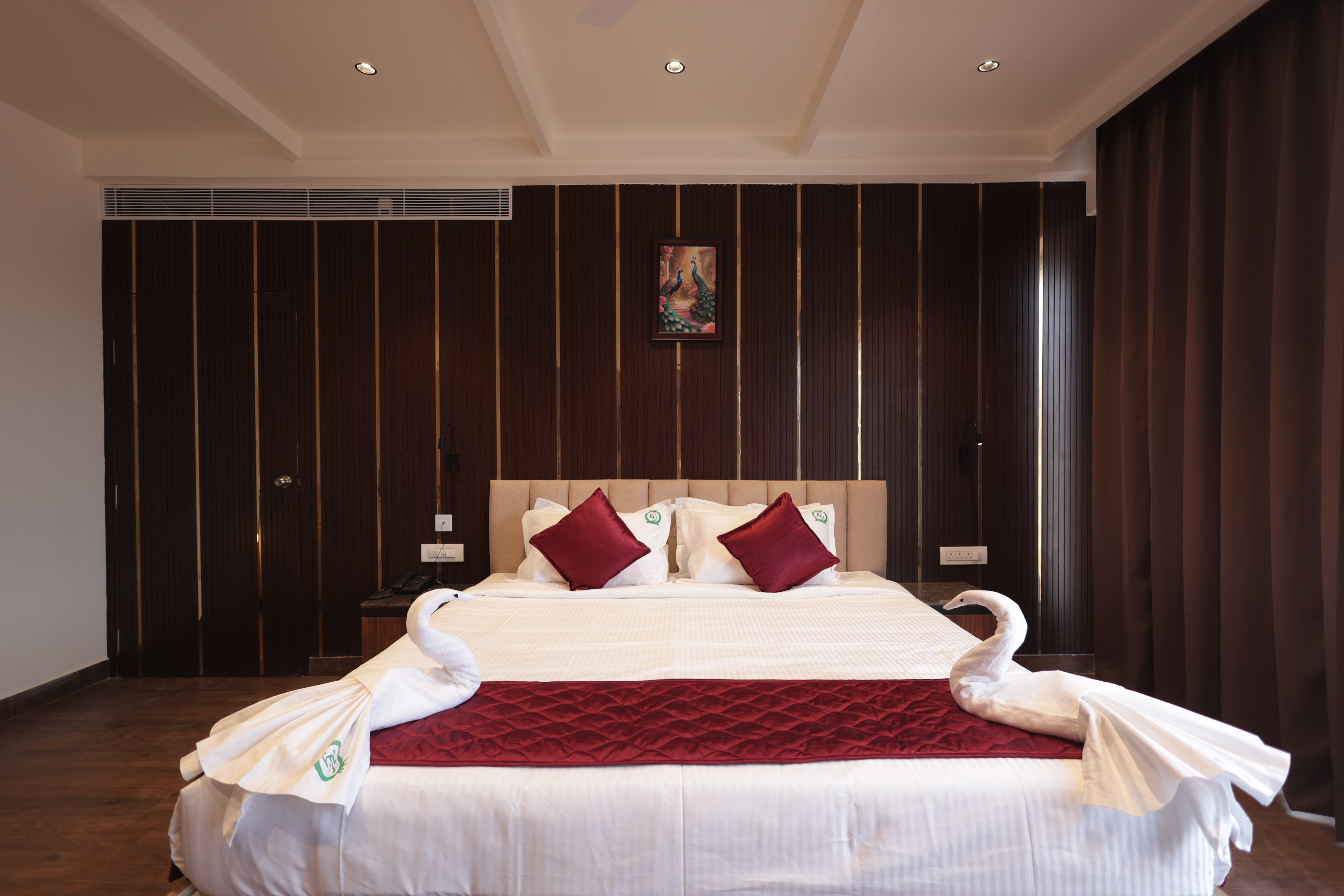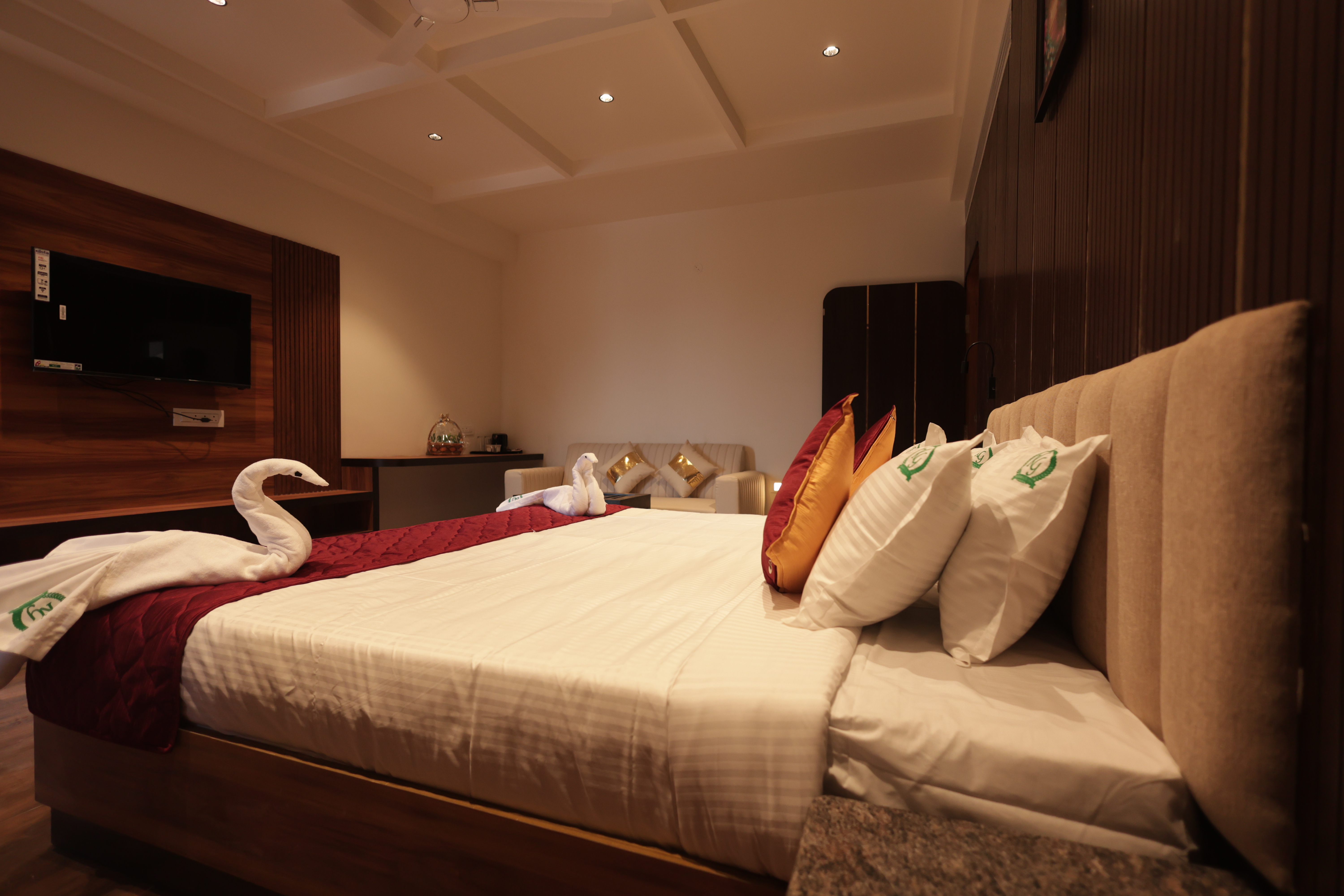 Spacious premium suite designed for comfort and relaxation. The room features a large double bed, elegant interiors, seating area and a pleasant city view. Ideal for couples or business travellers looking for extra space and privacy. Includes air-conditioning, flat-screen TV, free Wi-Fi, work desk, wardrobe and attached modern bathroom with hot water facilities.